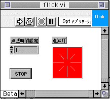 ブザーを鳴らす前に警告灯を点滅させるアプリケーションをフリッカーSubVI[tflick.vi]を用いて,作成します。